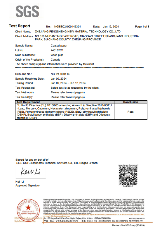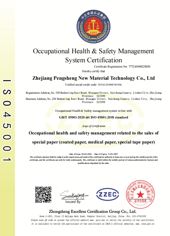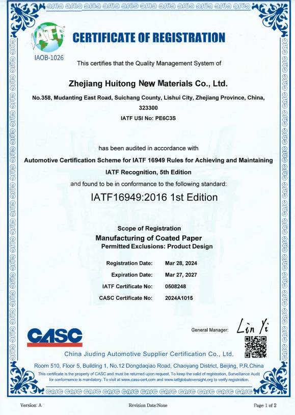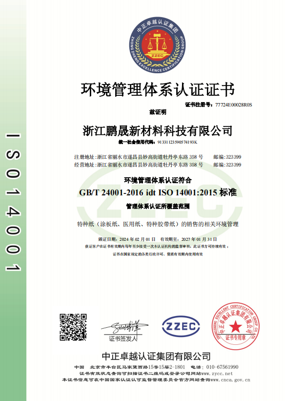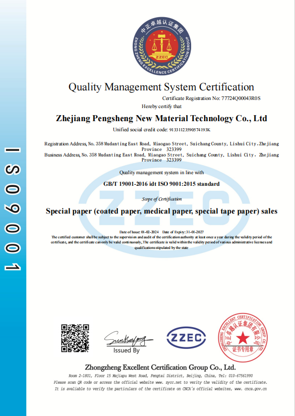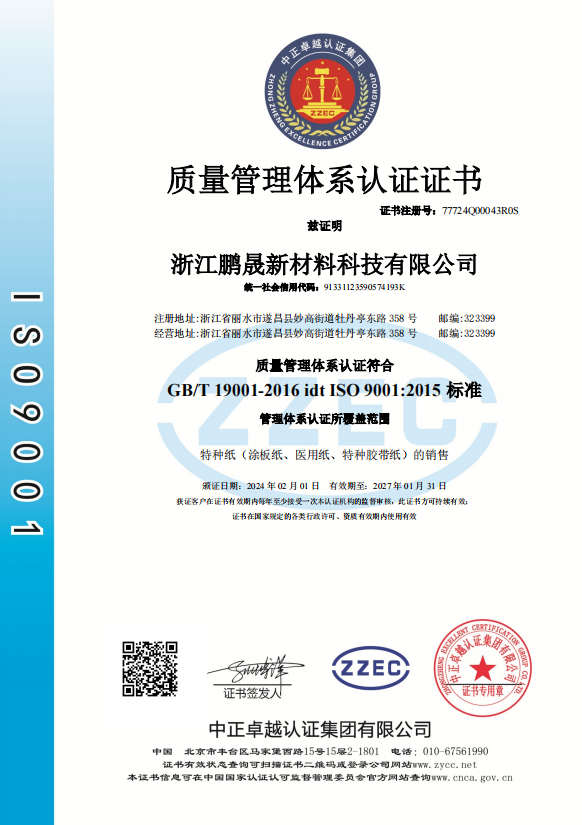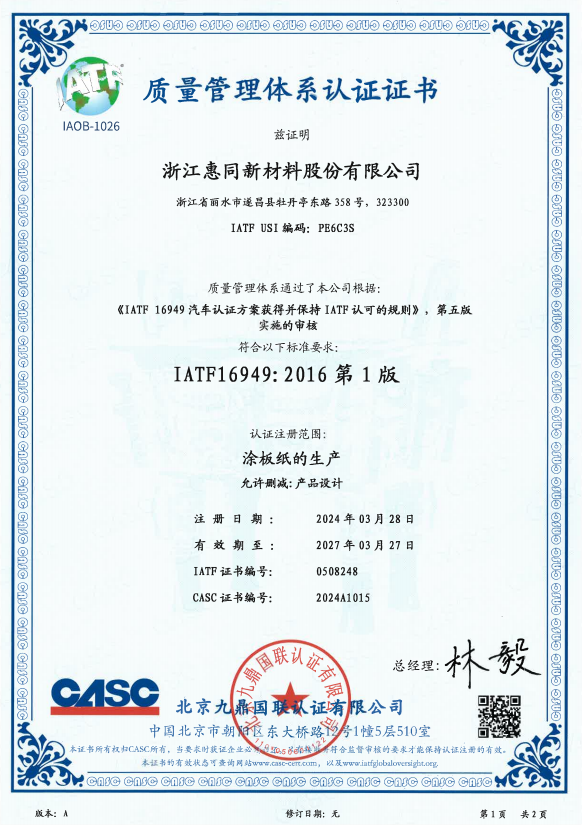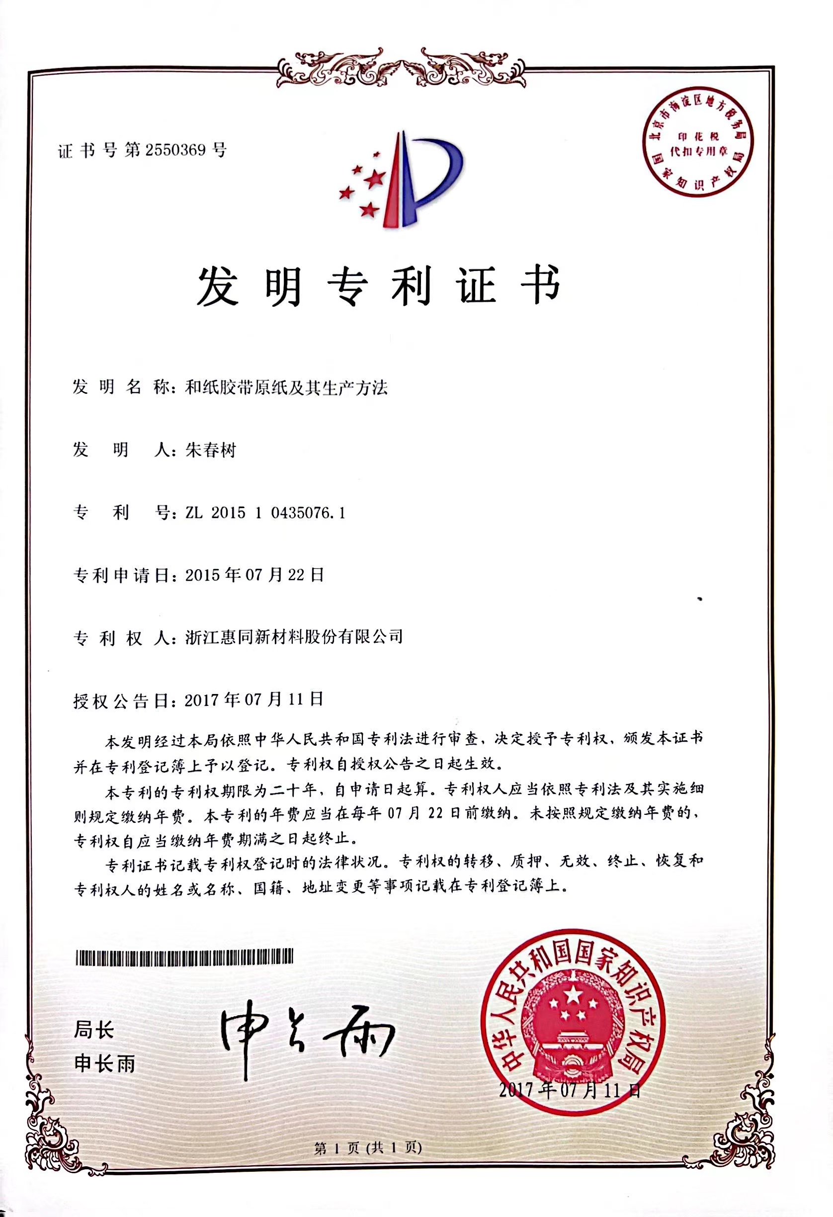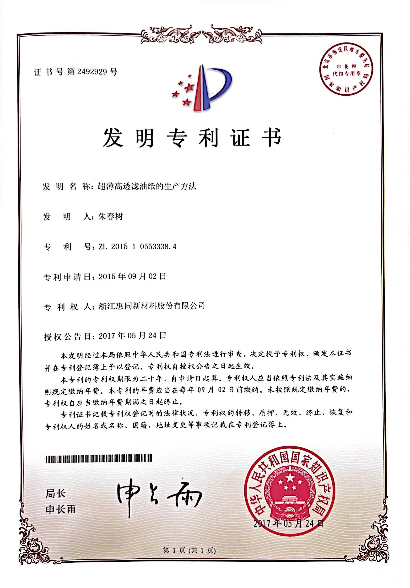 The company was established in May 2007 and listed on the New Third Board in 2015. It specializes in the production and deep processing of special paper. The company adheres to the corporate purpose of "customer-centered, striver-oriented", vigorously promotes technological transformation, R&D innovation, and management upgrading. It is committed to becoming the leader in the thin paper industry. The company has led the formulation of five national standards and two indus tr y s tandards, and par ticipated in the formulation of one national standard. The company has obtained 18 patents, including 6 invention patents. The company actively fulfills its social responsibilities and actively responds to the country's comprehensive promotion of green manufacturing concepts. In 2023, it was awarded the honor of Zhejiang Water-saving Enterprise by the Zhejiang Provincial Depar tment of Economy and Information Technology. The company's main products are pasting paper, high-permeability cotton paper, tea filter paper, fluorine-free food grade and oil-proof paper, fully degradable packaging paper, etc. Our pasting paper is in a leading position in the industry. It passed the "IATF16949 Automotive Certification System" in 2024. The company has established stable cooperative relationships with major well-known battery brands, such as Camel, Leoch, Tianneng, Chaowei, Fengfan, etc.