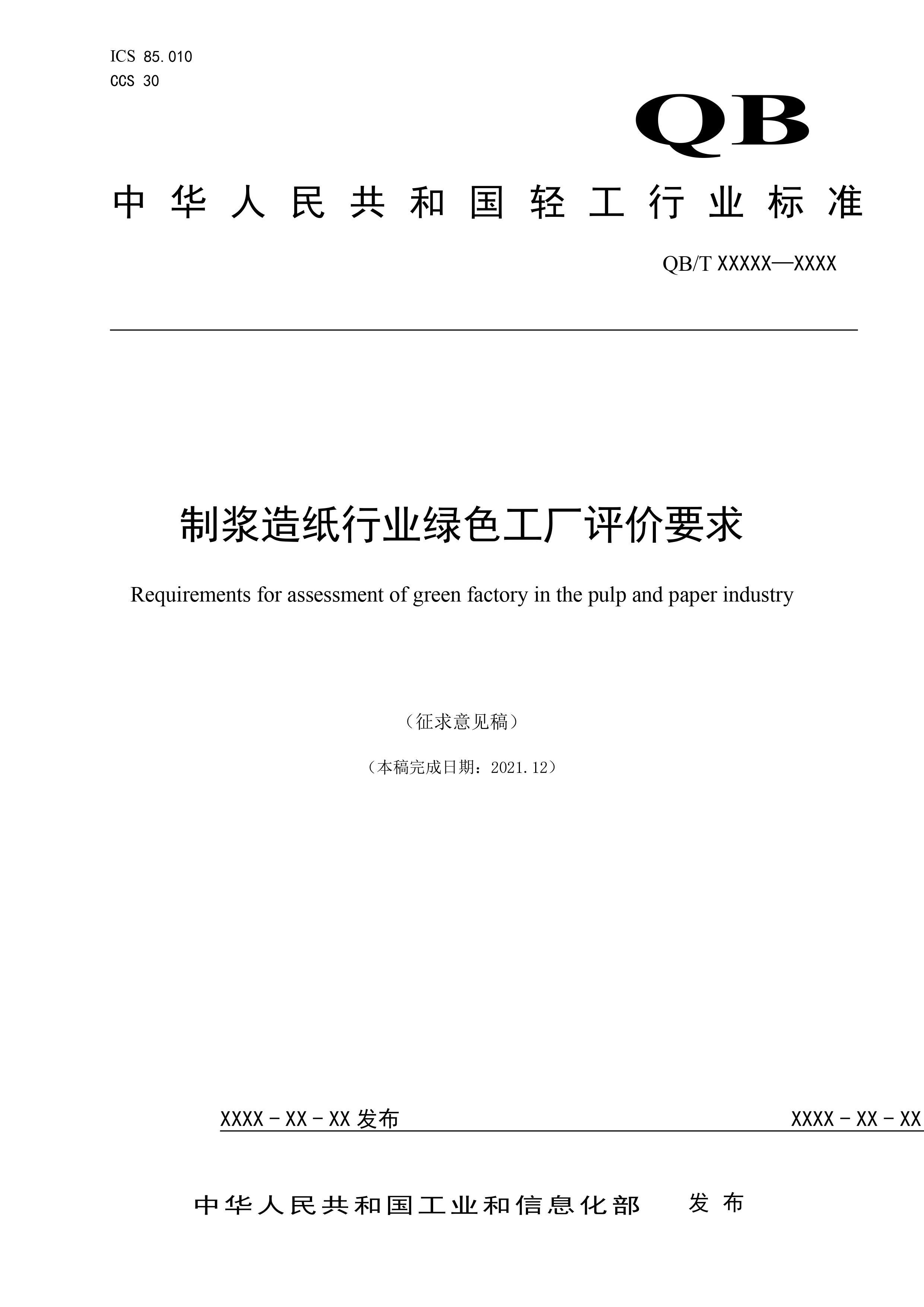 QBT《制浆造纸行业绿色工厂评价要求》报批稿)